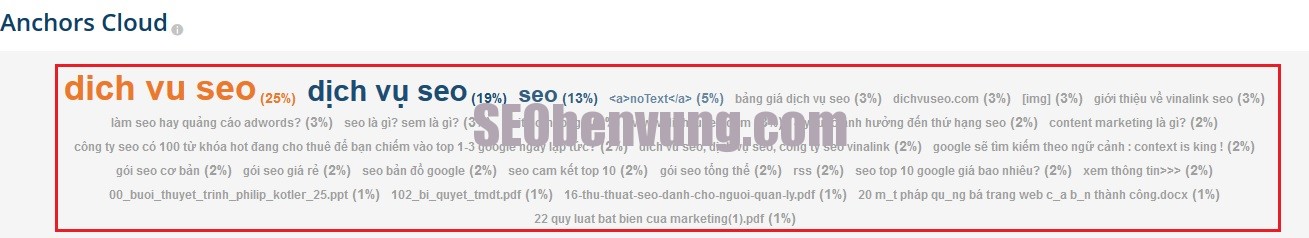 Anchors Cloud:Đây chính là Anchors text, các từ khóa được hiển thị trên google và kéo traffice đến với website, hay hiểu đúng hơn đó là khác hàng biết đến website từ những từ khóa nào, ở đây các bạn thấy rất nhiều từ khóa, những từ như giúp việc nhà theo giờ, hay địa điểm ăn ngon, hay xây dựng nhà thông minh với homesmart, hoặc lam kem